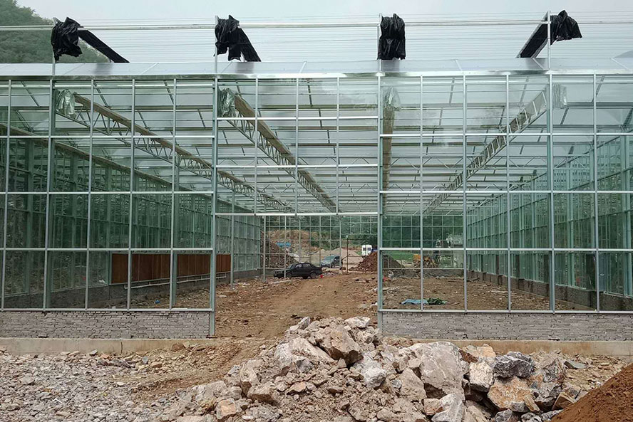 主體結(jié)構(gòu)采用熱鍍鋅管材,覆蓋材料采用陽(yáng)光板、普通或中空玻璃,采用溫室用鋁合金型材鑲嵌,邊緣與鋁合金型材連接處采用乙丙橡膠條密封。
